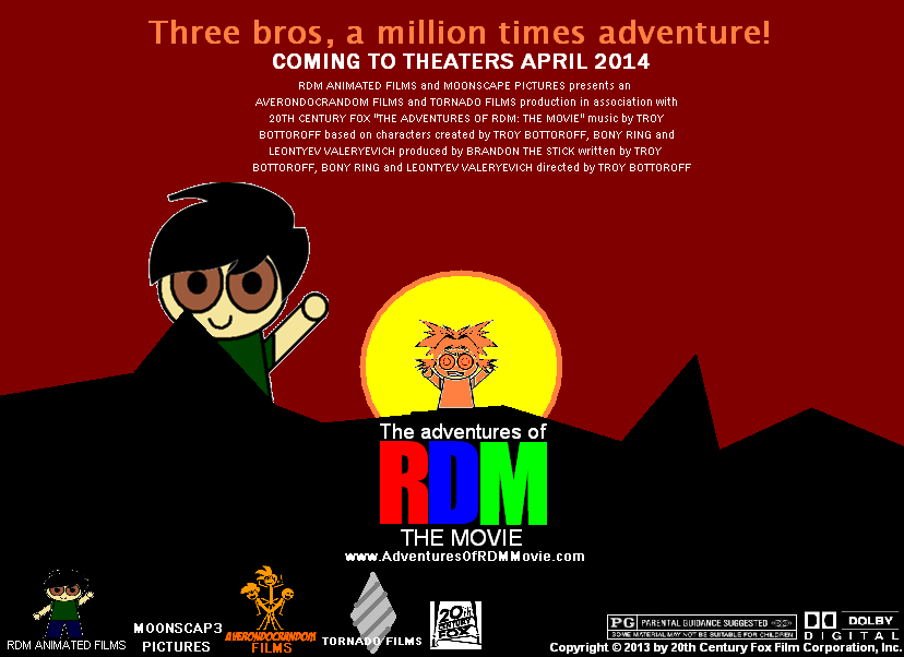 RDM Animated Films, Moonscape Pictures, AveronDocRandom Films, Tornado Films and 20th Century Fox produced The Adventures of RDM: The Movie, a film adaption of The Adventures of TroyTheCoolGuy animated series (before the name change) which was released on April 2014. The film was directed by one of the series creators, Troy Bottoroff.